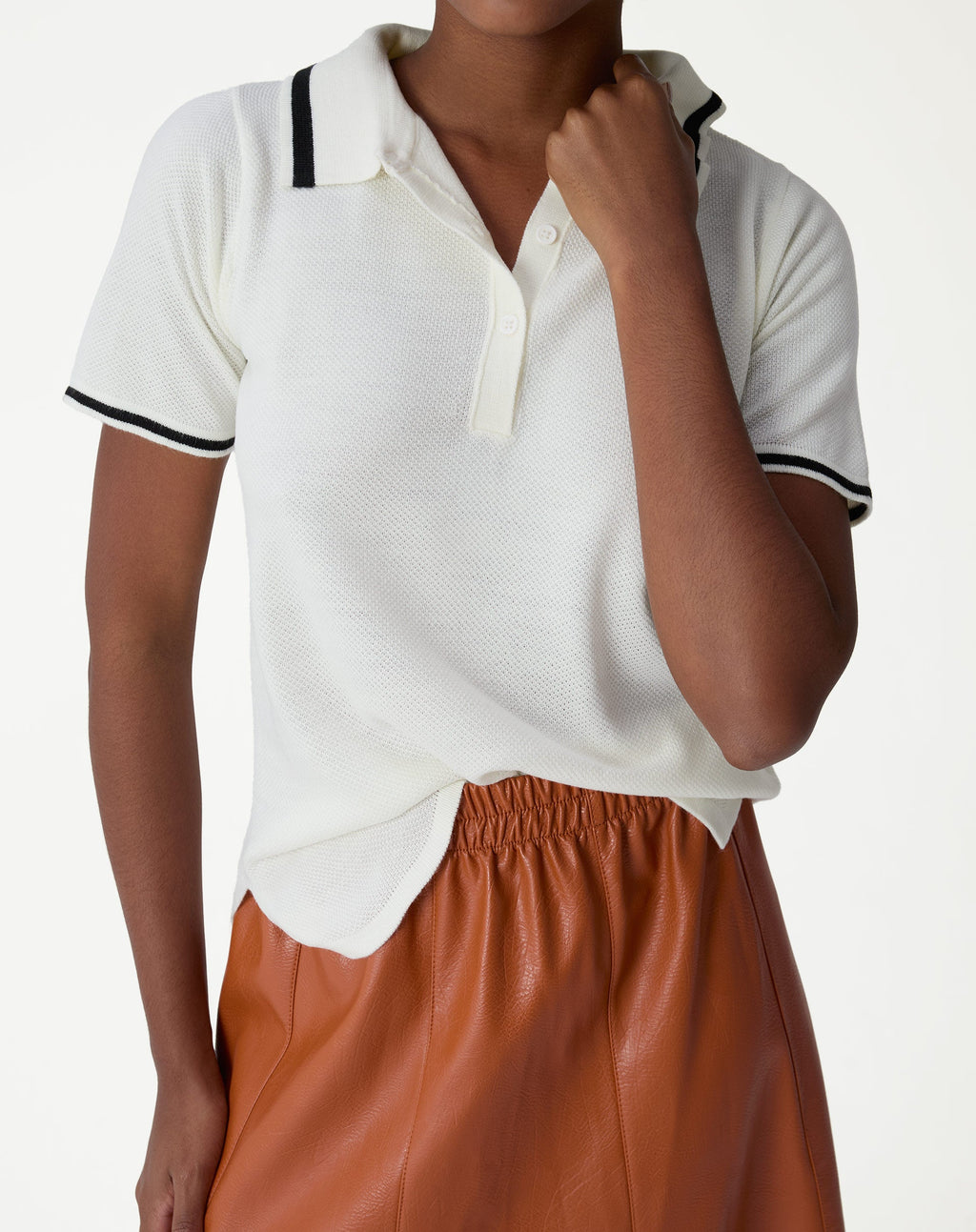 Descubra a BLUSA POLO TRICOT, a peça básica que vai elevar seu look casual! Polo de tricot confeccionada em acrílico de toque macio e leve, garantindo conforto e um caimento estruturado., possui comprimento midi, detalhes em gola e manga curta. Seu design minimalista e versátil é perfeito para diversas ocasiões.