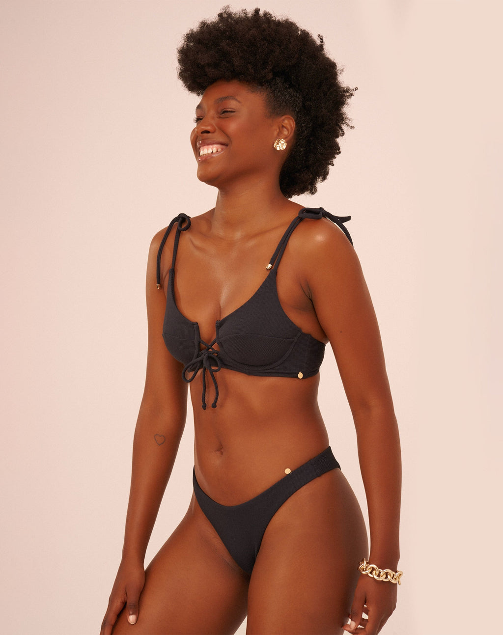 A bottom é uma calcinha básica asa-delta que veste em qualquer biotipo. Na cor preto fica ainda mais elegante.