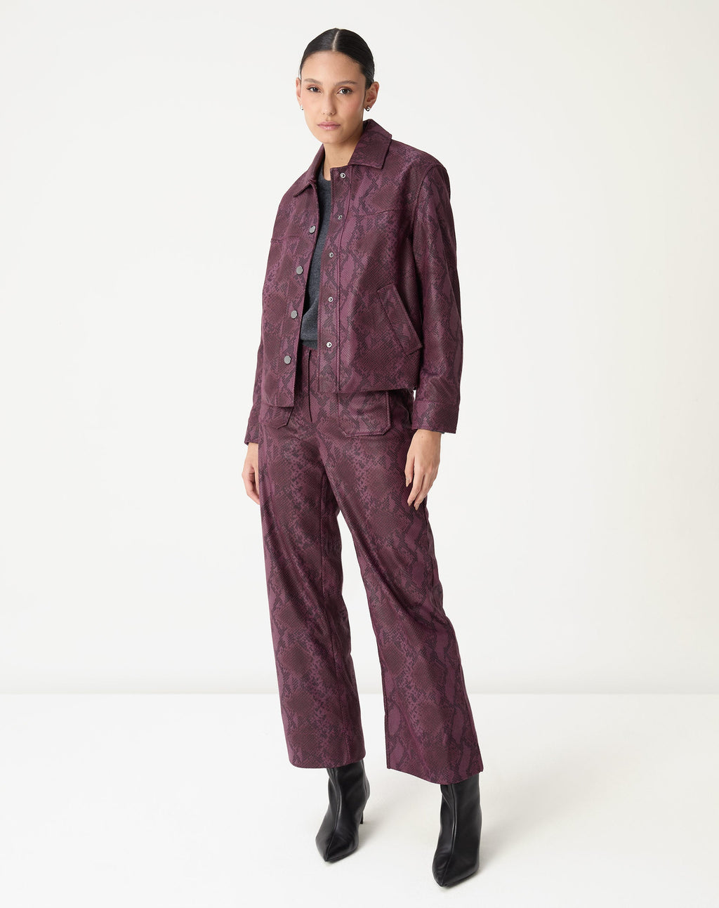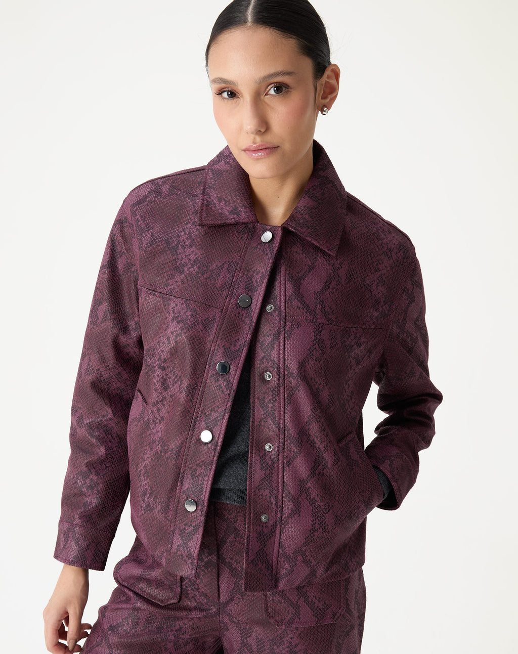 Descubra a JAQUETA QUADRADA COBRA PU, a peça must-have para elevar seu closet. Com estampa animal print, design reto e tecido em 100% poliéster, essa jaqueta midi de manga longa e gola é o item perfeito para um look cool e versátil.