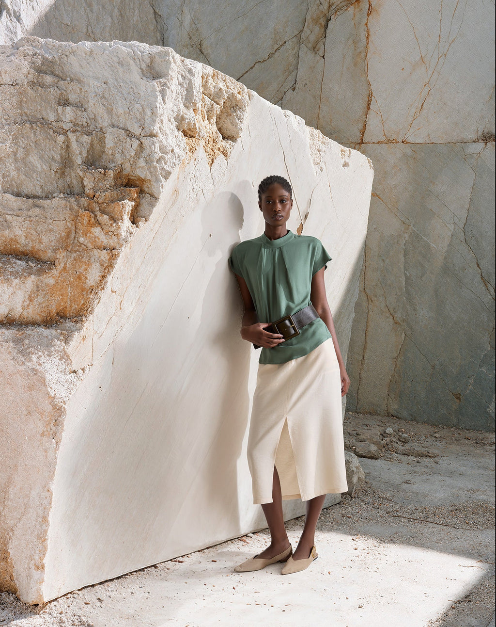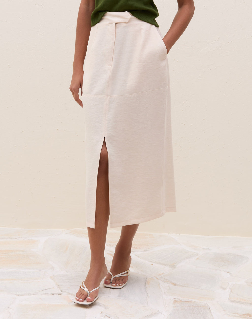 SAIA MIDI COM FENDA FRONTAL ALFAIATARIA - MANTEIGA